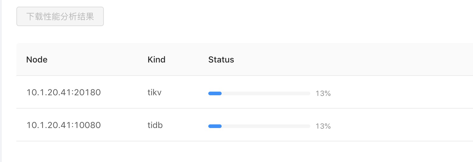 所有节点的性能分析完成后,点击「下载性能分析结果」按钮,打包下载性能分析成功节点的分析结果,如下 TiDB、TiKV 图: