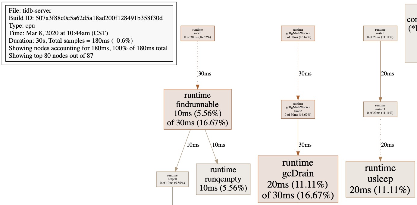 Dashboard 所在 PD 节点上需安装有 go、go pprof、GraphViz,否则无法对 TiDB 和 PD 节点进行性能分析,TiKV 的性能分析没有依赖要求。